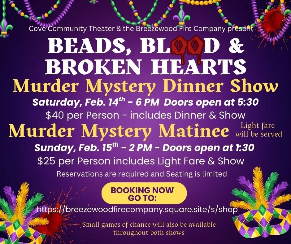Whether you're enjoying a delicious meal with a show or solving mysteries in our immersive escape experiences, Cove Community Theater promises fun for all ages!